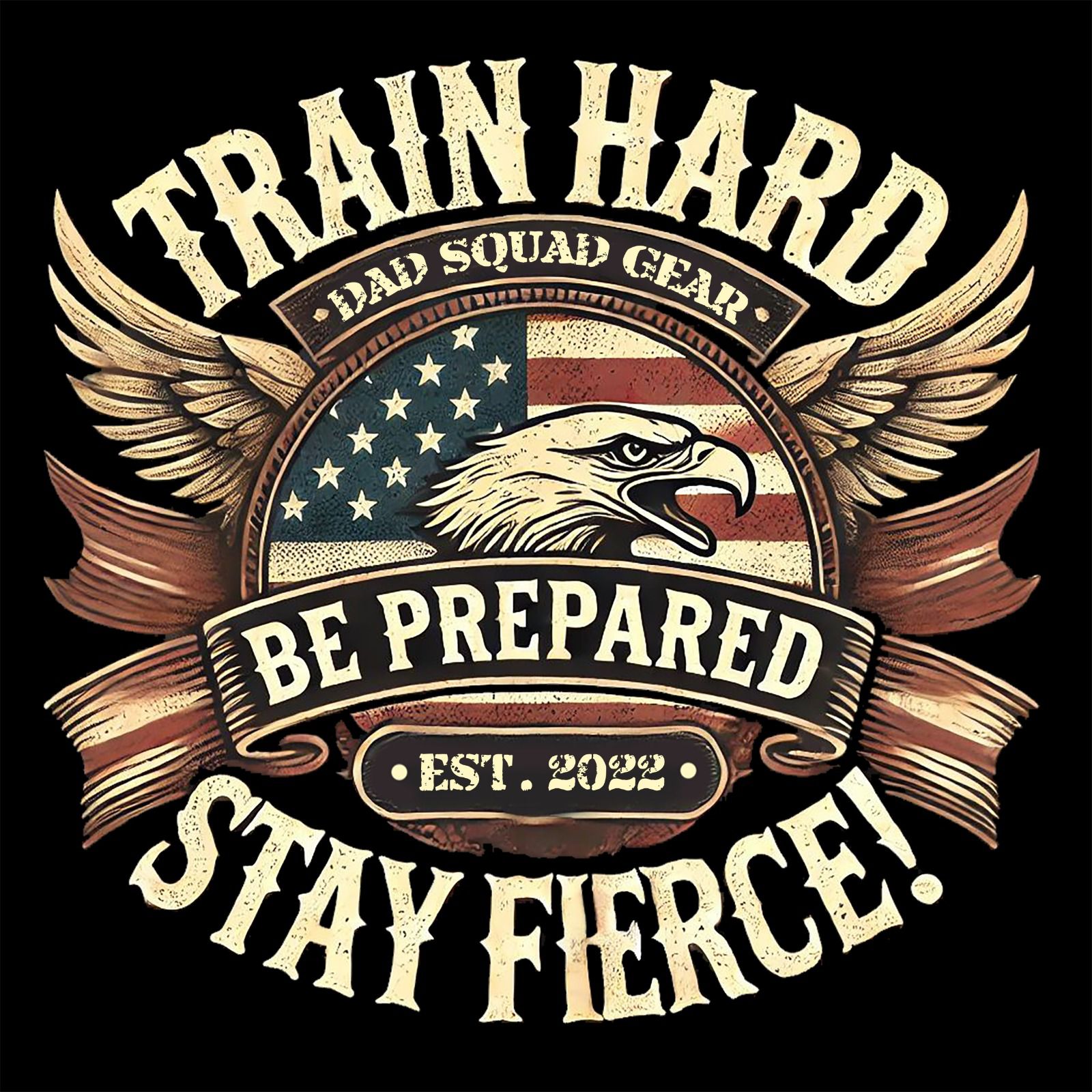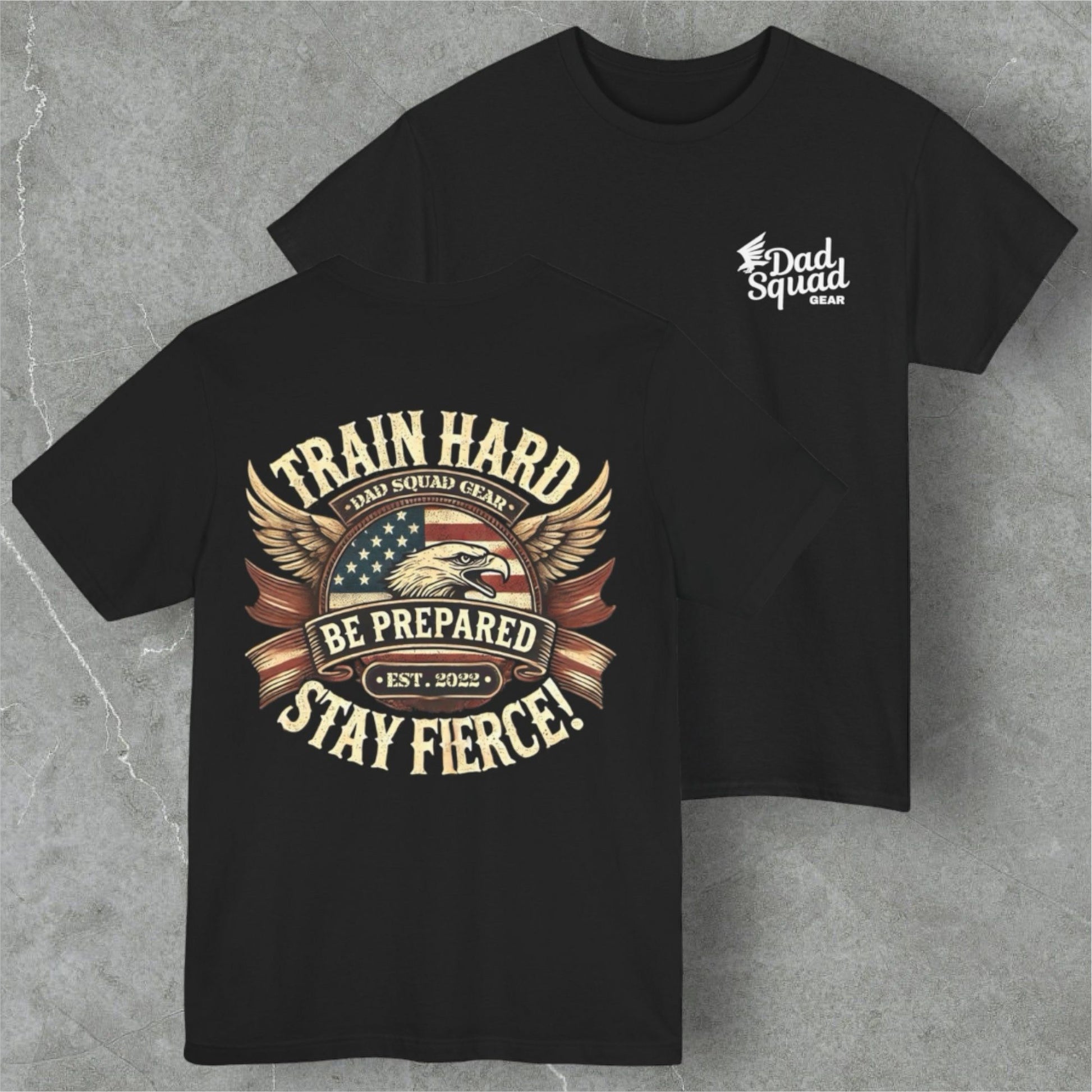 Unleash your inner warrior with our “Train Hard” tee. Featuring the powerful slogan: “Train Hard, Be Prepared, Stay Fierce!” this shirt embodies the relentless drive and commitment of dedicated dads. Made from premium, soft cotton for superior comfort, it’s perfect for workouts, training sessions, or casual wear. Wear it to showcase your dedication to staying strong, prepared, and always fierce. Join the ranks of those who push their limits and never back down.